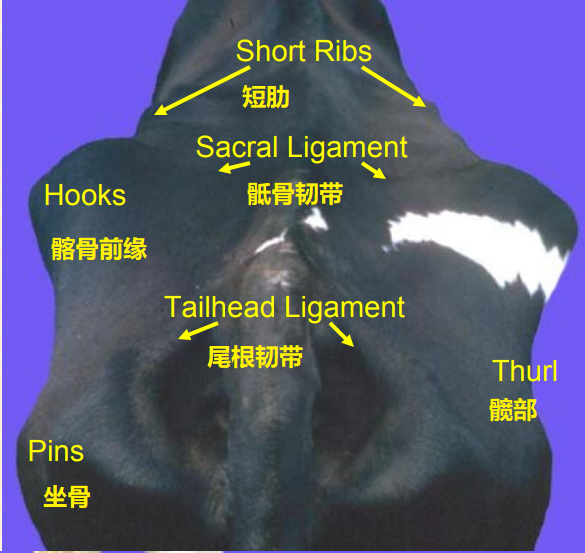固定的評分方向,從奶牛后側和右側評估,減少瘤胃充盈度對體況評分的影響。